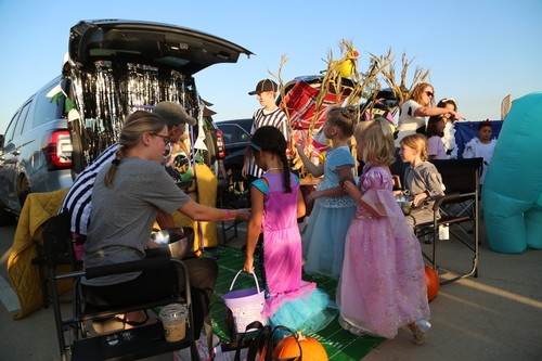 At Trunk or Treat, the parking lot transforms into a stroll-through candy lane — cars decked out in creative themes, friendly faces at every stop, and music in the air.